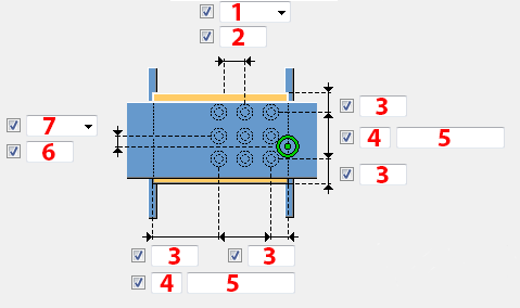 Gebruik het tabblad Gaten om de galvaniserende gaten in de eindplaat te definiëren.