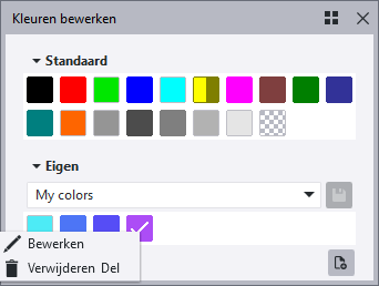 - Als u een kleur wilt bewerken, klikt u met de rechtermuisknop op de kleur in het palet en selecteert u Bewerken.