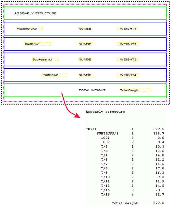 In deze stappen wordt beschreven hoe u een submerkstructuur maakt in een tekstuele template die vergelijkbaar is met die in deze afbeelding: