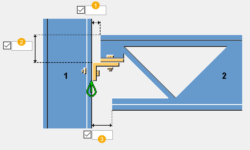 Standaard Geen verbinding tussen de extra profielplaat en de ligger AutoDefaults kan deze optie wijzigen. |