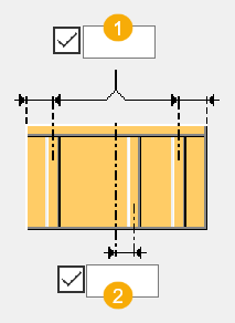 De binnenste afwerking wordt gemaakt als een lijnvormige afwerking. 1 Verticale afmeting van de afwerking 2 Horizontale afmeting van de afwerking |