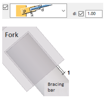 Selecteer of de gaffel wordt uitgesneden als de windverbandstaaf door de gaffel loopt. De gaffeluitsnijding wordt aangepast aan de grootte van de windverbandstaaf.