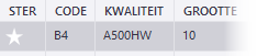 U kunt de eigenschap selecteren waarmee de staafdefinities in de stavendatabase worden gegroepeerd. De staafdefinities worden standaard op kwaliteit gegroepeerd.