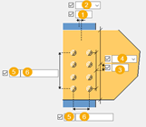 Onderde(el)(len) waarin sleufgaten worden gemaakt. De opties zijn afhankelijk van de betreffende component. |