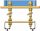 Ruimte tussen de voetplaat en de moer of ring boven de voetplaat. |