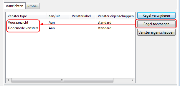 In dit voorbeeld wilt u twee aanzichten toevoegen, een vooraanzicht en een doorsnede.