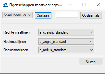 Open voordat u begint in een geopende betontekening het eigenschappenvenster en selecteer rechte maatlijn in de objectlijst. Stel de tekengrootte van de maatlijntekst in op 5,00 en sla de eigenschappen met de naam dim_font_5 op. Stel vervolgens de maatlijnkleur in op rood en sla de eigenschappen op met de naam dim_red.