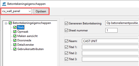 U kunt tekening-eigenschappenbestand cu_wall_panel later gebruiken als u tekeningen met vergelijkbare instellingen nodig hebt.