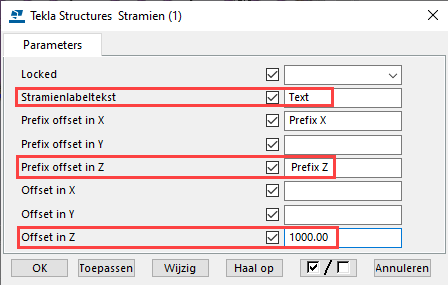 - Klik op Wijzigen en selecteer het stramienlabel.