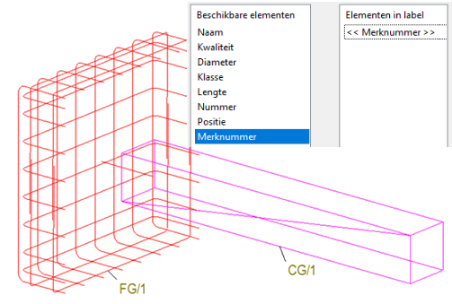 Merkpositie aan wapeningslabels toevoegen
