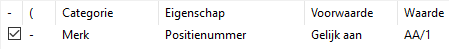ASSEMBLY.ASSEMBLY_POSselecteert u Gelijk of Niet gelijk aan en typt u het positienummer van het merk. -