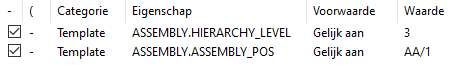 ASSEMBLY.HIERARCHY_LEVEL, selecteert u Groter of gelijk en typt u het nummer van het laagste niveau dat u wilt weergeven als de waarde. -