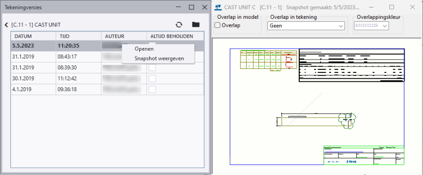 | Snapshot voor een tekeningversie weergeven |