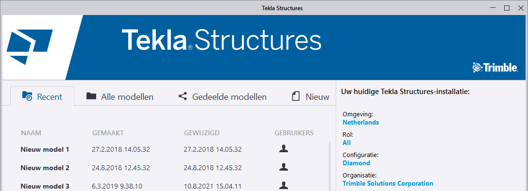Tekla Structures starten met het klassieke opstartscherm