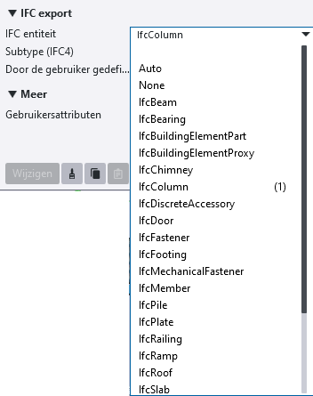 - De gebruikersinterface biedt niet alle functies die in de gebruikersinterface van de IFC2x3-export zijn opgenomen.