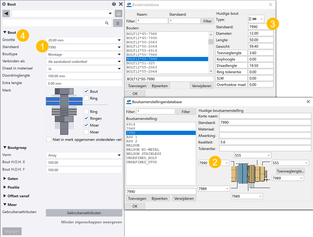 (2) De boutsamenstellingendatabase definieert welke boutnorm in de boutsamenstelling wordt gebruikt.