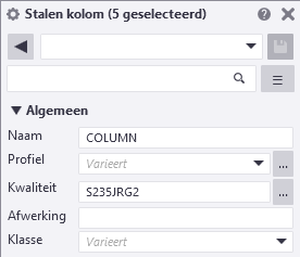 U kunt meerdere model- of tekeningobjecten in het model of in de tekening selecteren en de eigenschappen in een keer wijzigen. De geselecteerde objecten kunnen van hetzelfde objecttype zijn, zoals stalen kolommen of schetsobjecten in tekeningen, of ze kunnen van verschillende objecttypen zijn. In het eigenschappenvenster worden echter alleen de eigenschappen getoond die alle geselecteerde objecten gemeenschappelijk hebben.