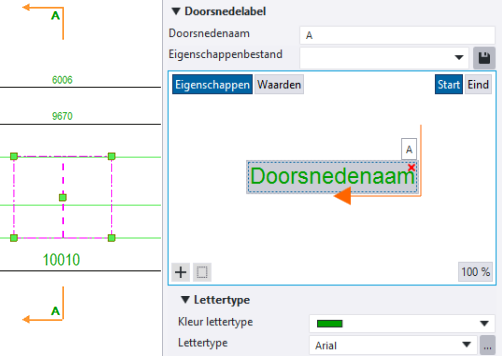 . U kunt ook rechtstreeks tekst in maatlijntags invoeren, de tekst wordt zoals deze zich in de container bevindt weergegeven.