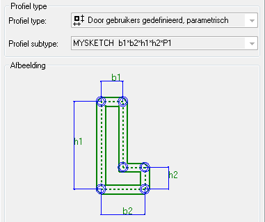 Om de vorm en afmetingen van een door u gemaakt profiel te tonen, kunt er een afbeelding van maken. Tekla Structures geeft de afbeelding weer wanneer u in de profielendatabase naar profielen bladert.