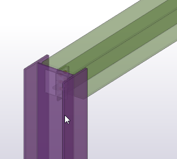 Tekla Structures markeert de objecten door ze met een lichte randlijnkleur weer te geven.