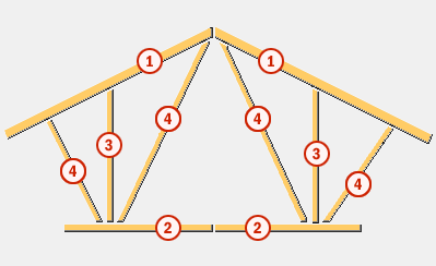 Vakwerk met bovenregel, schuine onderregel, eindplaten, diagonalen en verticalen. |