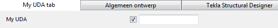/***************************************************************************/ /* User-defined attributes */ /***************************************************************************/ part(0,"Part") { /* Common tab pages for part attributes */ tab_page("My UDA tab") { unique_attribute("MY UDA", "My UDA", string,"%s", no, none, "0,0", "0,0") { value("", 0) } } tab_page("My UDA tab", "My UDA tab", 19) modify (1) } /***************************************************************************/ /* Column attributes */ /***************************************************************************/ column(0,"j_column") { tab_page("My UDA tab", "My UDA tab", 19) modify (1) }Het voor het gebruikersattribuut toevoegen van unique maakt het gebruikersattribuut uniek. De waarde van het gebruikersattribuut wordt niet naar een ander onderdeel gekopieerd.