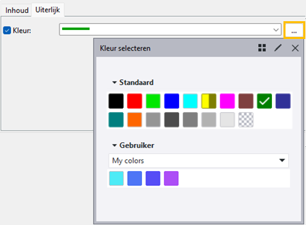 - Klik op een kleurinstelling in het eigenschappenvenster van een tekeningobject of op de selectieknop