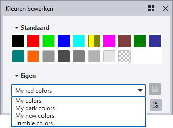 in het dialoogvenster met tekeningobjecteigenschappen. - Selecteer een opgeslagen kleurenpalet uit de lijst Eigen.
