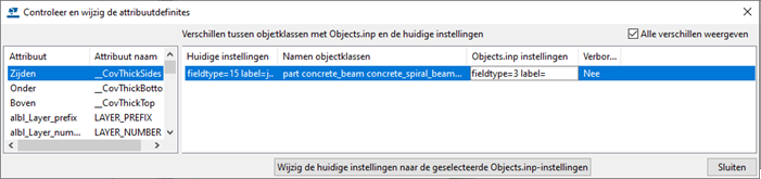 Het dialoogvenster Controleer en wijzig attribuutdefinities wordt weergegeven.