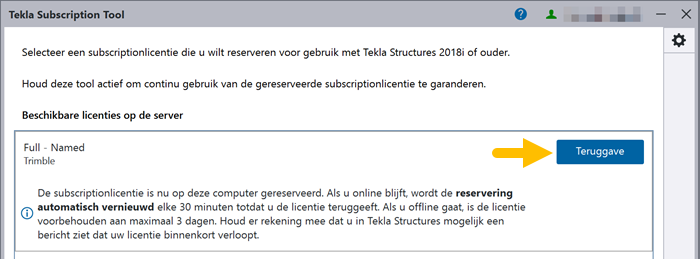 Geef uw subscriptionlicentie terug met de Tekla Subscription Tool