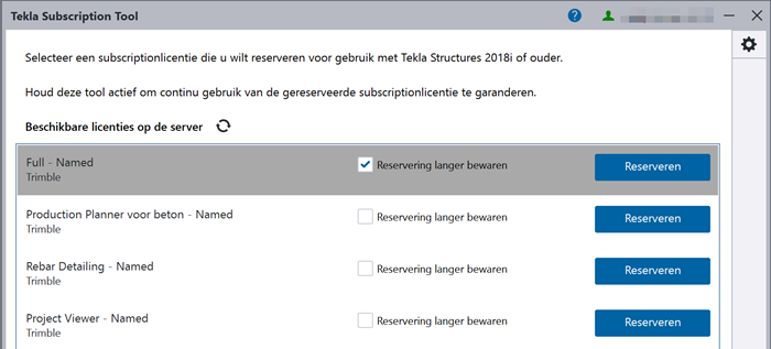 Een subscriptionlicentie reserveren met de Tekla Subscription Tool
