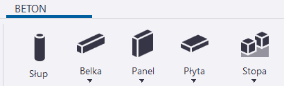 Do tworzenia elementów stalowych służą polecenia na karcie Stal na wstążce. Do tworzenia elementów betonowych służą polecenia na karcie Beton na wstążce.