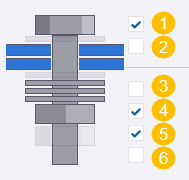 Jeśli pole wyboru elementu śruby jest zaznaczone, element śruby jest używany w zespole śrub i przy obliczaniu długości śruby.