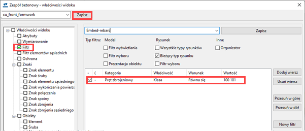 Upewnij się, że klasyfikacje i nazewnictwo obiektów w modelu są zgodne z filtrowaniem. Postępuj zgodnie z wytycznymi obowiązującymi w firmie.