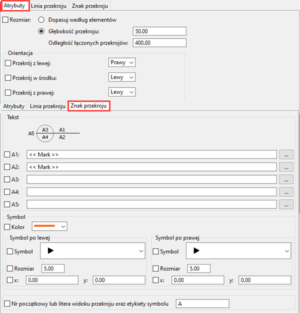 (2) Przekrój A-A utworzony automatycznie, ręczne znaki oraz wymiary