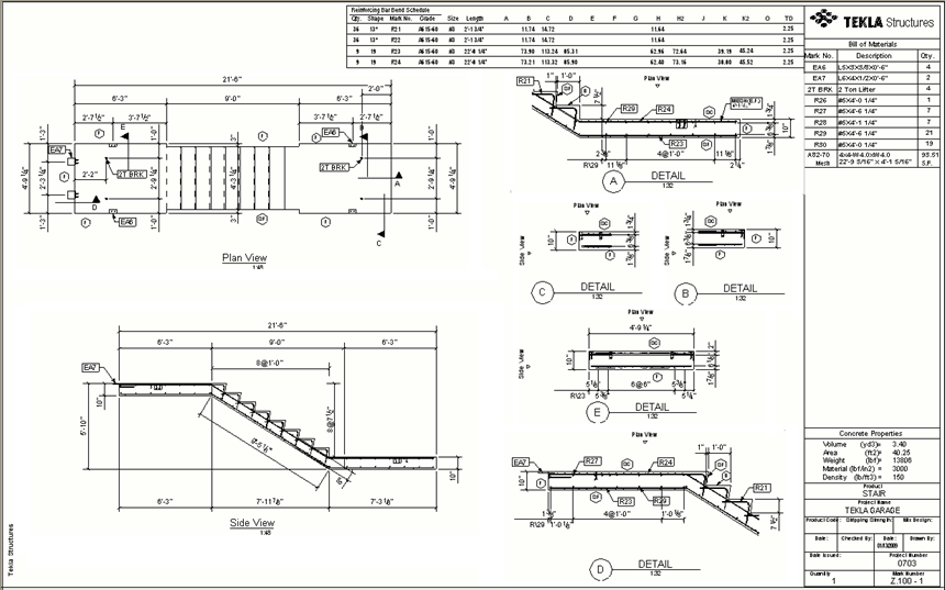 Aby uzyskać więcej informacji na temat rysunków zespołów betonowych, zapoznaj się z sekcjami Tworzenie rysunków produkcyjnych i Właściwości rysunku zespołu betonowego.