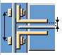 Odstęp między dolną półką elementu podrzędnego a elementem głównym. Tekla Structures dodaje wprowadzoną w tym miejscu wartość do odstępu określonego na zakładce Obraz. |