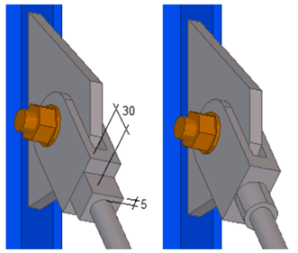 Wybierz, czy w widełkach ma zostać utworzony otwór. Otwór jest zawsze prostopadły. Otwór można określić, jeśli jest tworzony zarówno ściąg, jak i dodatkowy pręt stężenia. |