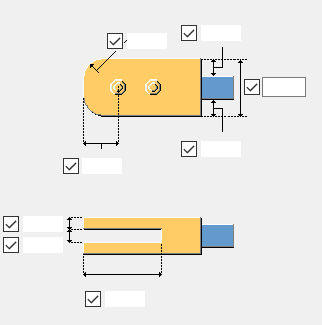 Można określić wymiary w kierunku poziomym i pionowym w przypadku otworów podłużnych, a także szczelinę w przypadku otworów powiększonych lub gwintowanych. Wartością domyślną jest 0 mm, co powoduje utworzenie otworu okrągłego.