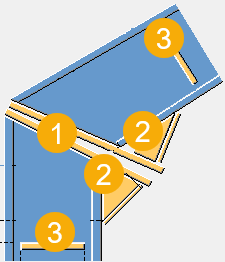 Spawane połączenie wzdłużne belek. Podłużnica schodów do spocznika. Uwaga: Nie działa na bardzo małych nachyleniach ani na belkach w tej samej płaszczyźnie. |