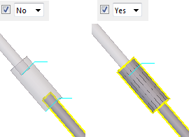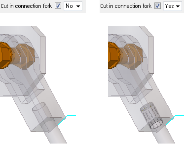 Umożliwia zdefiniowanie, czy element widłowy ma być wycinany, gdy będzie przechodził przez niego pręt stężający. Wycięcie elementu widłowego dostosowuje się do rozmiaru pręta stężającego.