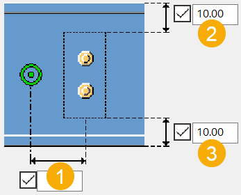 Rozstaw śrub. Wartości rozstawu śrub należy oddzielać spacją. Należy wprowadzić wartość każdej odległości między śrubami. Na przykład w przypadku 3 śrub należy wprowadzić 2 wartości. |