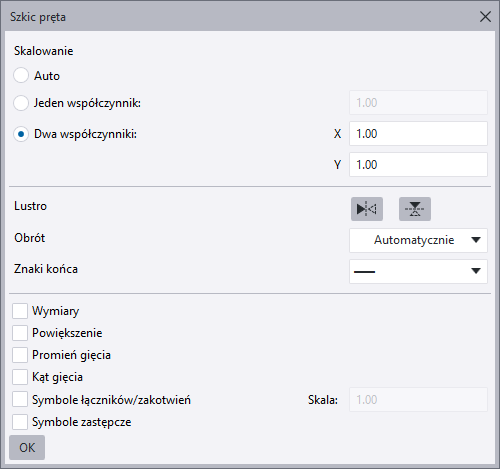Ustawienia szkicu pręta