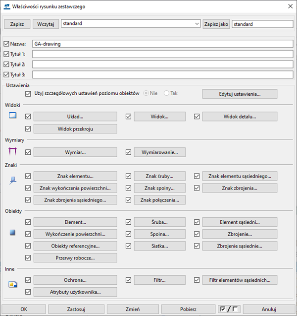 Właściwości rysunku zestawczego