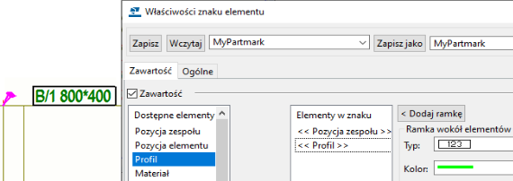 Właściwości rysunku pojedynczego elementu, zespołu i zespołu betonowego