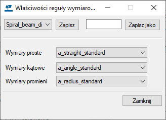 Do belek spiralnych można dodawać wymiary proste, kątowe i promieniowe.