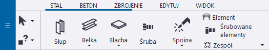 Wszystkie kluczowe polecenia Tekla Structures są dostępne na wstążce. Poleceń są pogrupowane według ich zastosowania. W razie potrzeby można zmodyfikować wygląd wstążki i dostosować jej zawartość. Wszystkie polecenia Tekla Structures działają w ten sam sposób.