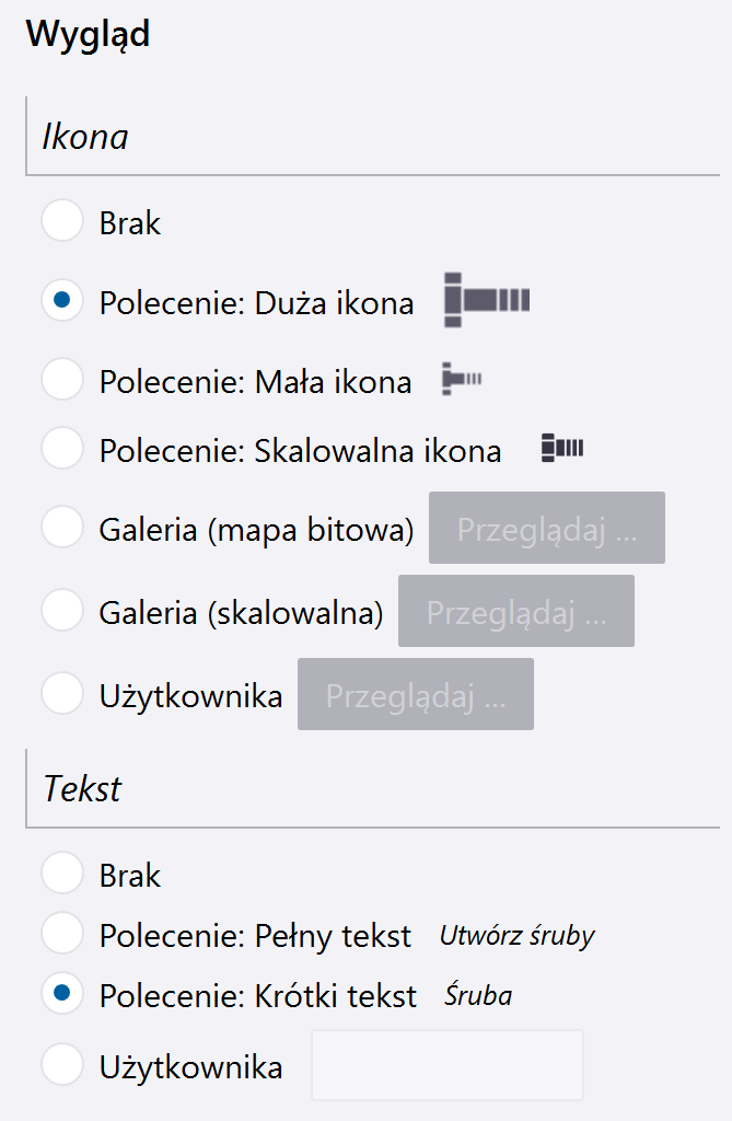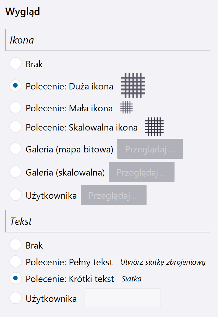 Dodanie przycisku z jednym poleceniem oraz przycisku rozwijanego ze znajdującą się pod nim grupą poleceń |