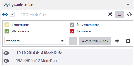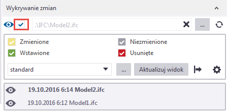 Wykrywanie zmian między zapisaną wersją, a wersją w przeglądanym pliku modelu