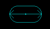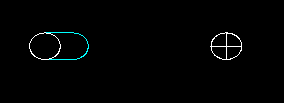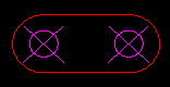 Dwa okręgi w otworze podłużnym. Rozmiar okręgu odpowiada rzeczywistemu rozmiarowi otworu. Gdyby okręgi stykały się ze sobą, zostałby utworzony tylko jeden okrąg pośrodku otworu podłużnego. Symbol otworu podłużnego jest tworzony zgodnie z wybranym ustawieniem fantomu (w tym przykładzie |